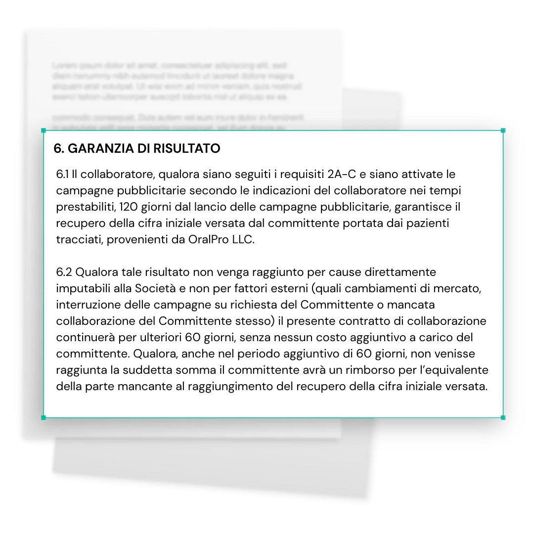OralPro ti da una garanzia di Recupero Totale dell'Investimento.